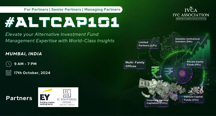 India’s apex industry body for alternative assets, the Indian Venture and Alternate Capital Association (IVCA), today announced the launch of #AltCap101 – a premier knowledge-sharing programme for fund managers in alternate capital.Organised in collaboration with IC Universal Legal, Advocates & Solicitors (ICUL) and EY India, this advanced learning platform will provide strategic insights to seasoned and emerging fund managers, helping them navigate the dynamic world of alternate capital. Built upon the success of IVCAs #VC101 in 2023, #AltCap101 is the next step in IVCA’s mission to provide insights and training forsenior partners in the alternate capital ecosystem.