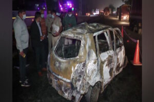 An oil tanker struck a car and a pickup van close to Sidhrawali village in