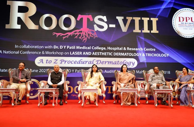 Dr. D. Y. Patil Medical College, Hospital & Research Centre, Pimpri, Pune, successfully hosted the Roots-VIII Conference, an eminent gathering dedicated to Aesthetic and Procedural Dermatology, LASERS and Trichology. The three-day event, convened distinguished dermatologists, researchers and practitioners from across India and abroad to share pioneering advances and clinical best practices.
